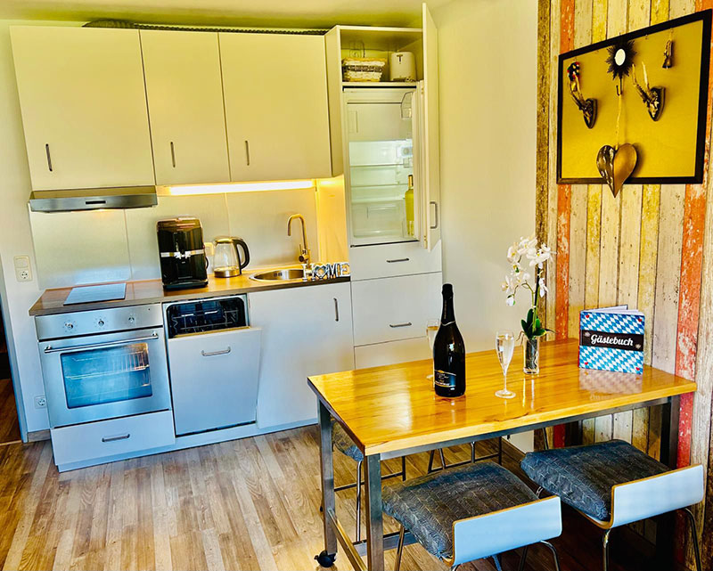 Die moderne, voll ausgestattete Küche bietet alles, was Sie für kulinarische Erlebnisse benötigen. Ob gemütliches Frühstück oder gemeinsames Abendessen – hier wird Kochen zum Genuss.