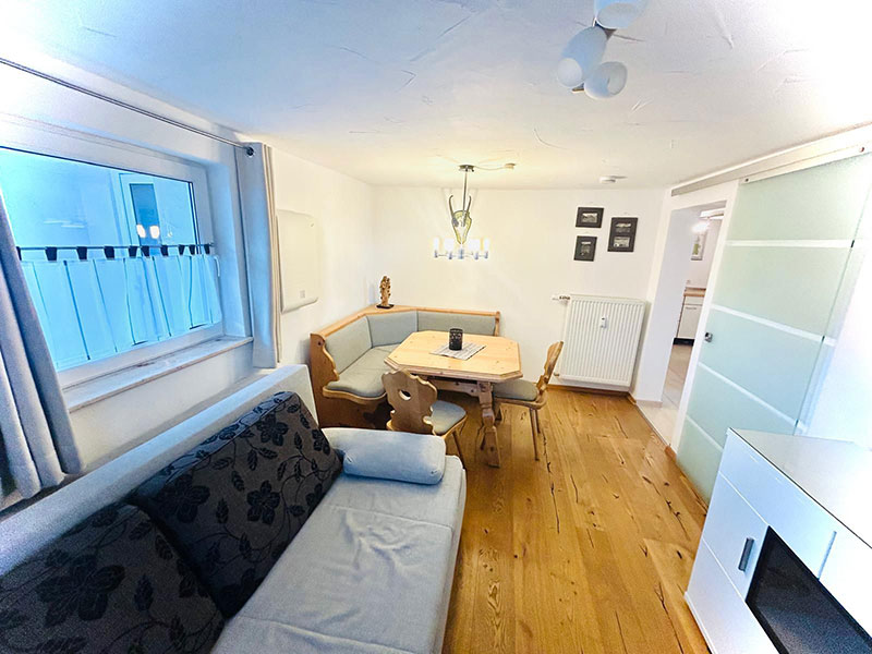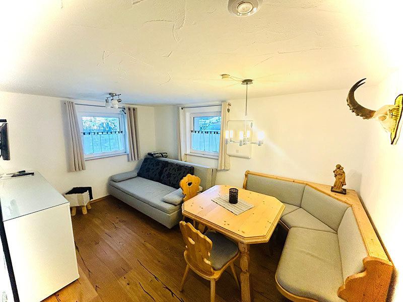 Das Wohnzimmer verfügt über eine 160cm Schlafcouch sowie TV und eine gemütliche Eckbank als Essbereich. Somit finden in der Wohnung bis zu vier Personen bequem Platz. Hier treffen Komfort, Gemütlichkeit und modernes Design aufeinander.