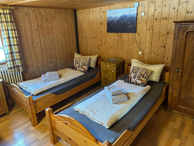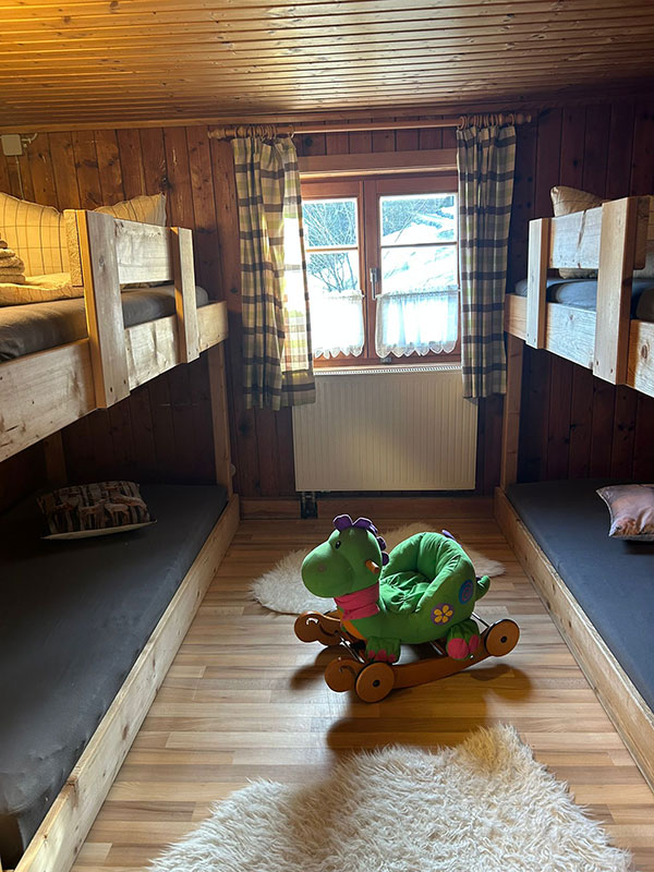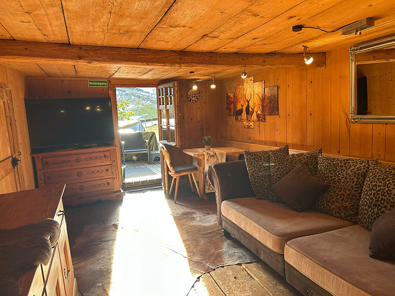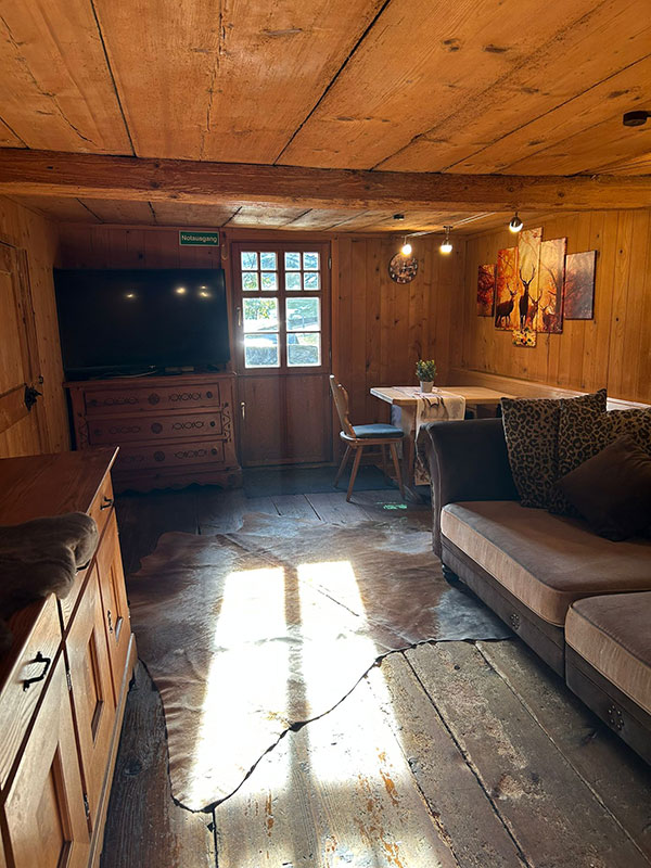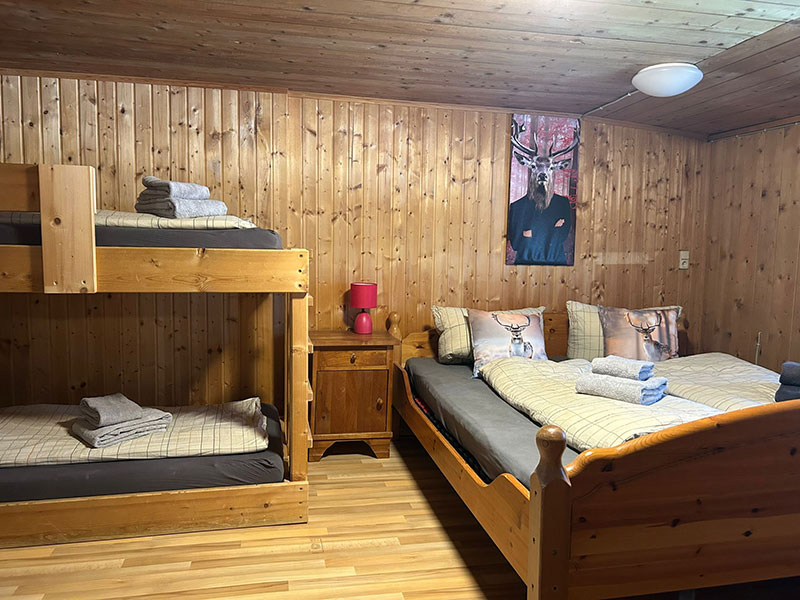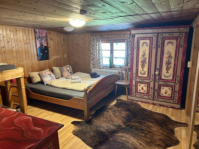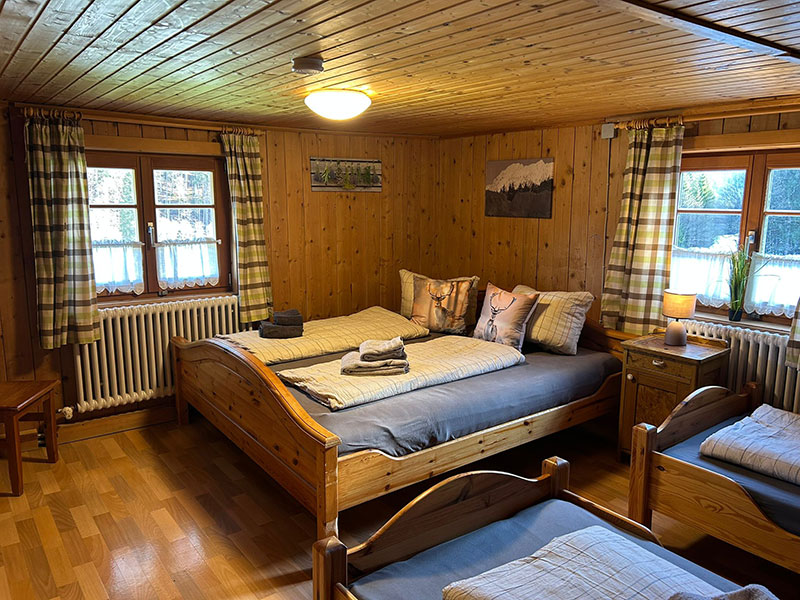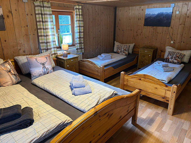 Die urige Hütte bietet drei großzügige Schlafzimmer mit bis zu zwölf Betten und ist damit perfekt geeignet für Familien, Freundesgruppen oder besondere Anlässe. Hier genießen Sie Komfort in authentischer Hüttenatmosphäre.