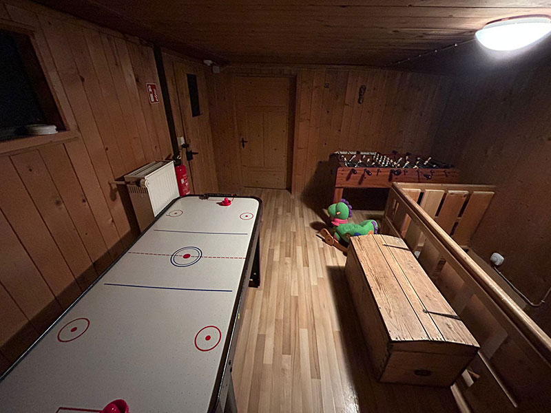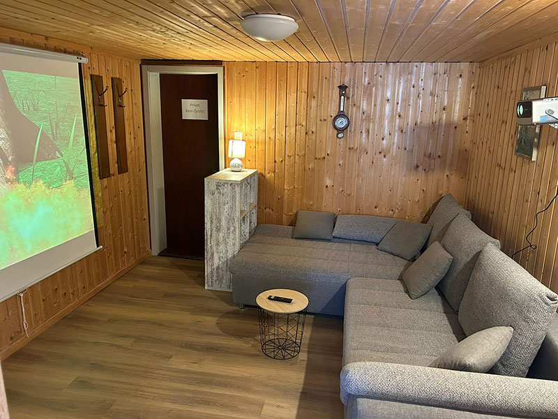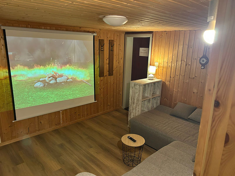 Für gemütliche Abende bietet die Hütte ein Heimkino, in dem Sie Filme und Serien in bester Atmosphäre genießen können – perfekt für Familien oder Gruppen.